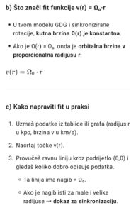 1. Uzmi jedan dobro snimljen spiralni disk i napravi fit v(r)=Ω₀·r na širokom rasponu r; gledaj reziduale.