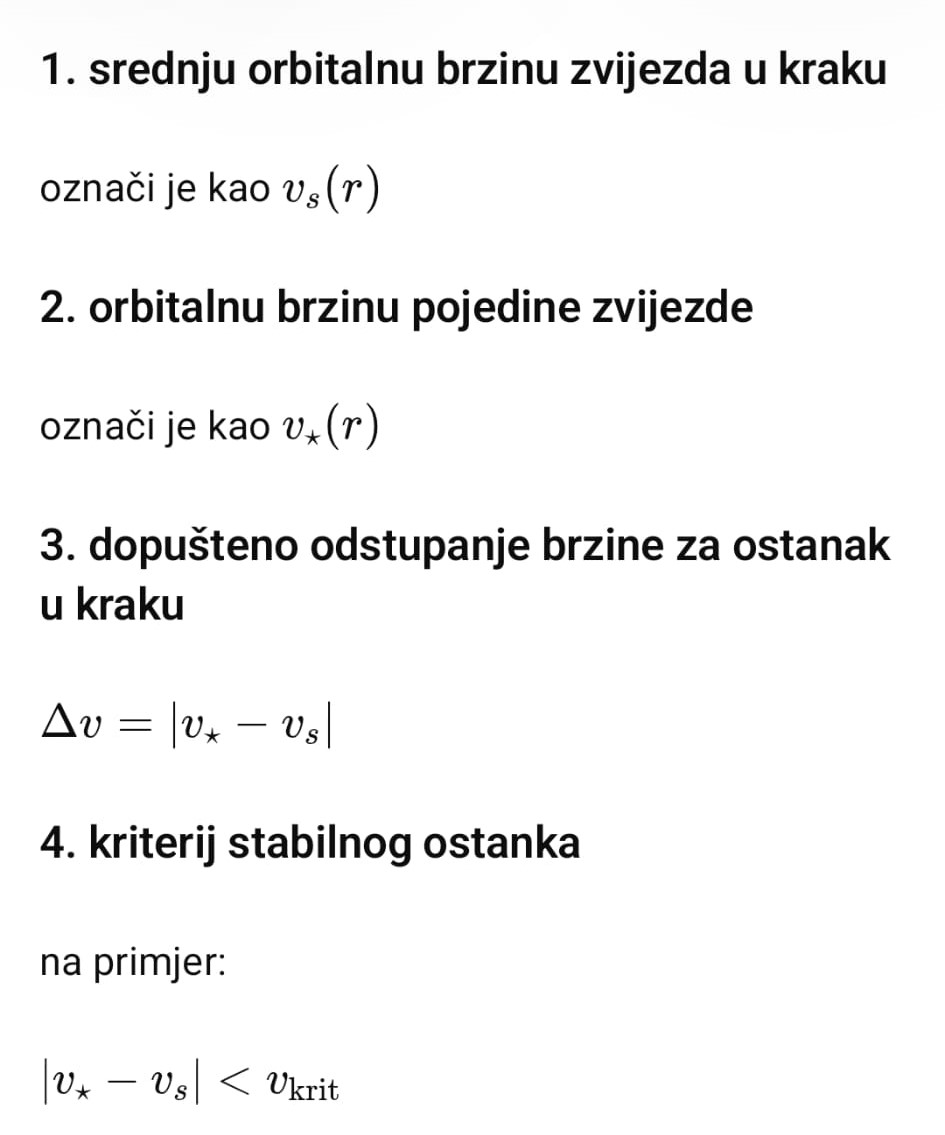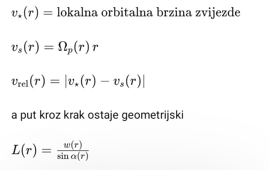Ti si još bez pune geometrije osjetio da zvijezde ne mogu “samo proći” kroz spiralni krak u kratkom vremenu.
